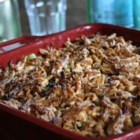 Homemade roasted onions, you can place the casserole in oven to cook while making roasted onion topping. You can add them to the casserole when onions are done, then return to oven to finish cooking until done.