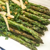 3. Spray grill grates with non-stick cooking spray and preheat grill to medium-high. Place asparagus and lemon halves over direct heat and grill for 3-4 minutes per side, or until they are crisp tender.