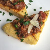 9. Remove grilled wedges from heat and serve immediately with your favorite toppings, such as Tuscan Meat Ragu. Top with some shaved Pecorino Romano cheese and chopped fresh parsley and enjoy!